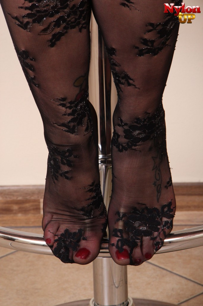 Blonde Milf In Patterned Bodystockings Shows image 8