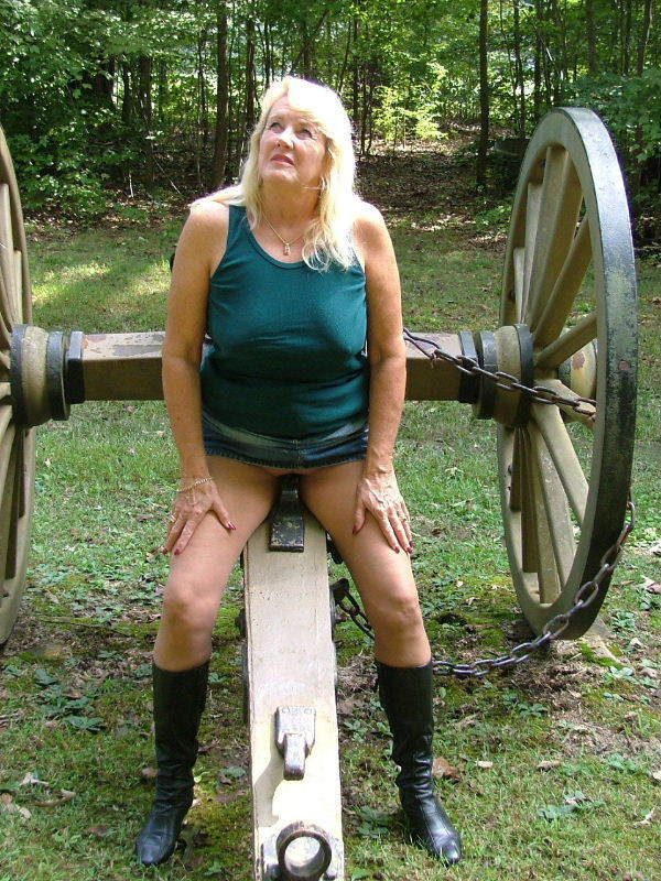 Mature housewife Adonna in tan pantyhose out in the woods lifts up her skirt